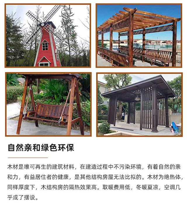 熱門關(guān)鍵詞:木屋,涼亭、景觀水車、花架、風(fēng)車、秋千、售賣屋